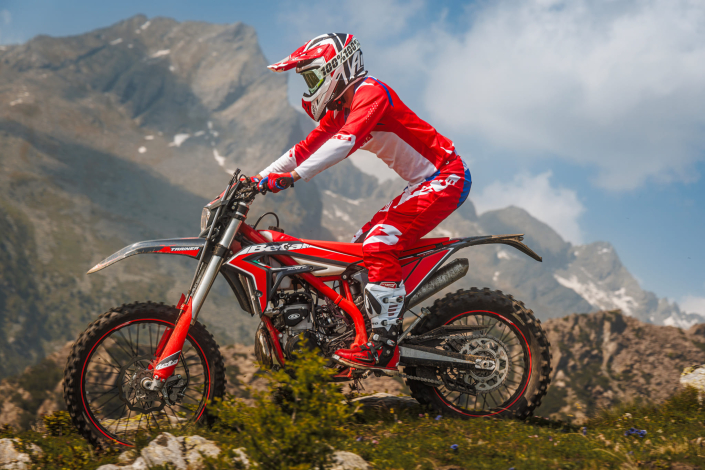 Lower to the ground than RR models with a narrow mid-section and full-bodied delivery that is easily managed from low to high rpm, XTrainer has the power it needs to hold the racing line, but favours slightly slower and more technical routes where it can exploit its trials-inspired vocation, as well as the torque of its Beta 250 or 300 two-stroke engine.